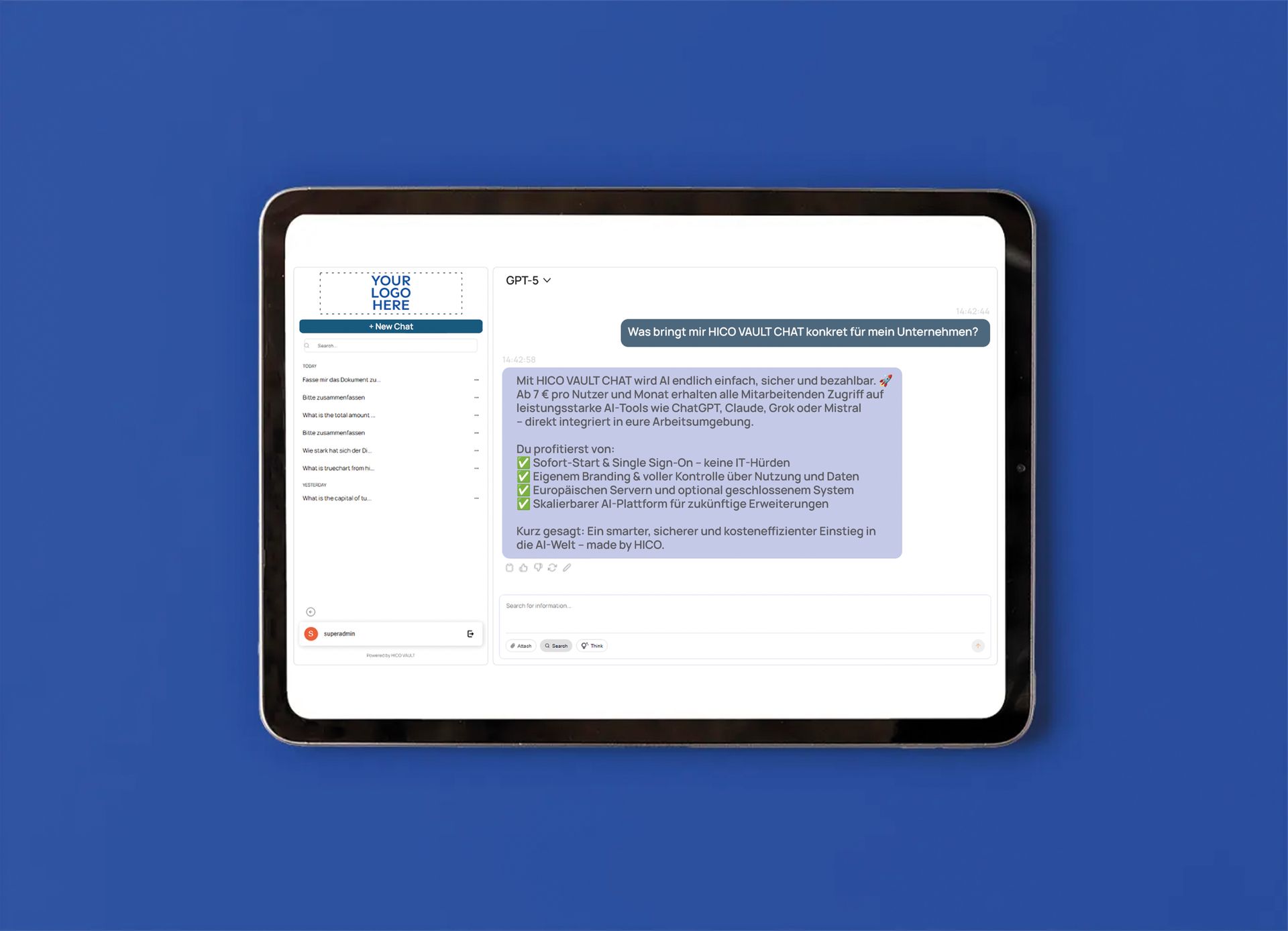 Starting with AI can be simple, effective, and affordable, helping your organization explore where intelligent technology creates real value. With HICO VAULT CHAT, your teams get an intuitive and engaging introduction that makes AI tangible from day one.